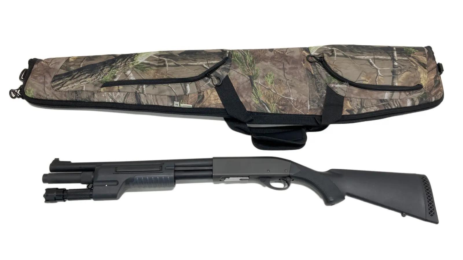 ライト付フォアエンドとエクステンションバレルでカスタム済で、ソフトガンケースも付属。