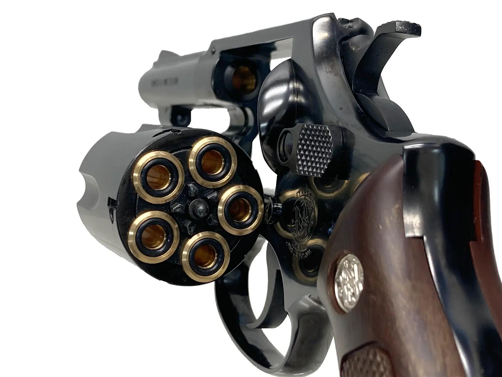 不動の人気を誇るコンパクトリボルバーが、至高の輝きを纏って登場。「Wディープブラック」は、ABS素材でありながら金属を思わせる深い光沢を放ち、クラス最高峰の高級感を演出している。実弾さながらの存在感を放つカッパーヘッド仕様のXカートリッジが、装填の儀式をより特別なものへと昇華。木目調グリップとのコントラストも美しく、観賞用としても実射用としても隙のない傑作と評価したい。