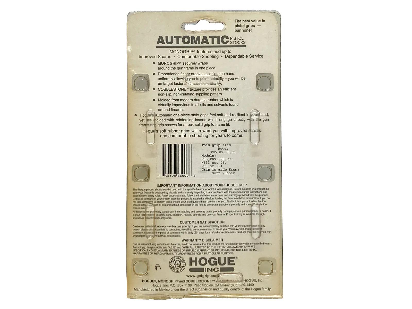 [HOGUE] RUGER P85-P91 ラバーグリップ・フィンガーグルーブ BK 85000 (中古)の販売ページ|エアガン.jp