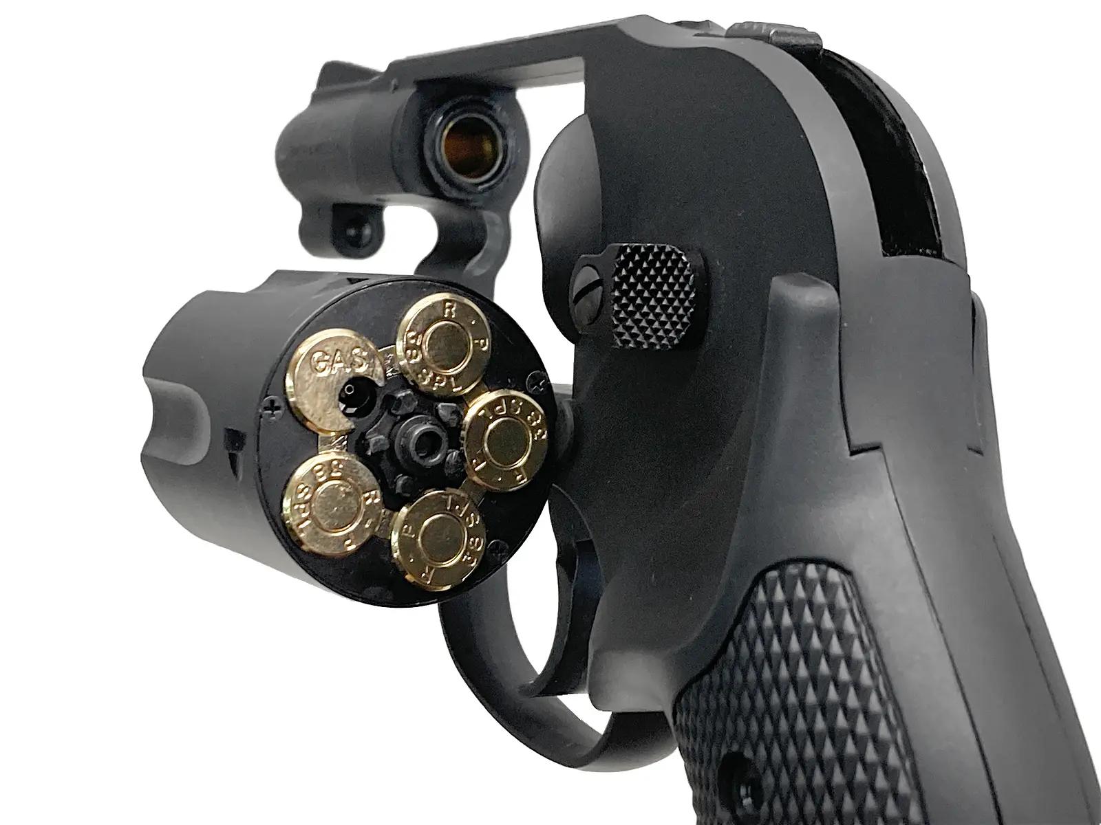 日本警察での採用も確認されている、稀少なボディーガードの仕様をタナカがVer.2として精緻に再現。実銃のアルミ合金製を彷彿とさせるHW樹脂に、Airweightのレーザー刻印。ハンマーを覆う独特のフレーム形状は、衣服への引っ掛かりを防ぎつつシングルアクションも可能にする機能美を誇る。ペガサスシステムによる安定した実射性能も兼備した、極めてリアリティの高い一挺だ。