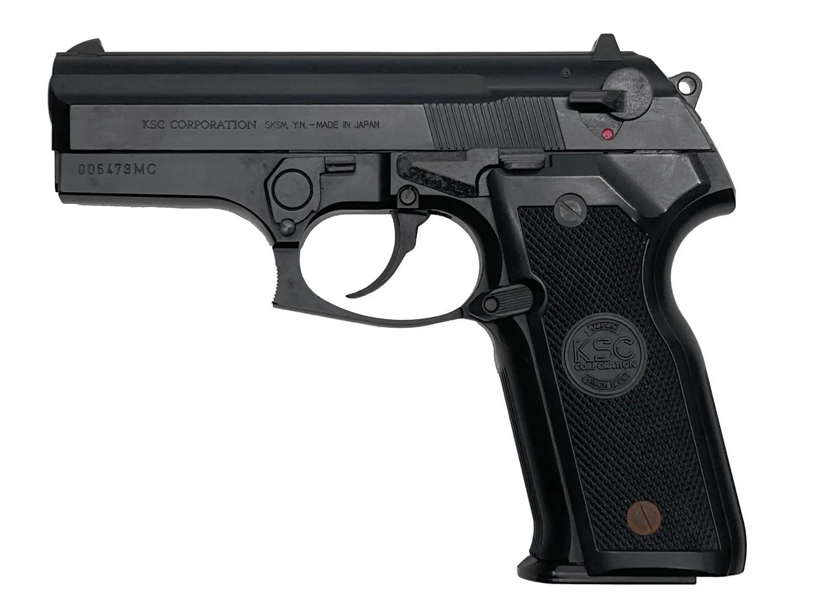ベレッタM92の次世代機として誕生した「クーガーF」を、KSCが実銃の登場直後にいち早く製品化。最大の見どころは、バレルが回転しながらロックを解く独自の「ロテイティング・バレル」機構の忠実な再現だ。ABS樹脂仕様によるシャープなブローバックと、ハードキックユニットが生み出す鋭い反動を両立。近代ベレッタ特有の流麗なフォルムと、メカニカルな作動美を高い次元で融合させた傑作といえる。