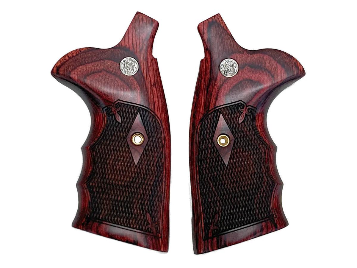 米国の老舗グリップメーカー「アルタモント」が手掛ける、S&W Nフレーム用の高品質木製グリップ。鮮やかな赤みが美しい「スーパーローズ」カラーの積層材を使用し、チェッカー彫刻による優れた防滑性と実銃用メーカーならではの精緻なフィッティングを両立している。オーバーサイズ(O/S)設計により、大柄なNフレームをしっかりとホールド可能。サイドに埋め込まれたS&Wメダルが、愛銃に高級感と伝統的な風格を与える。
