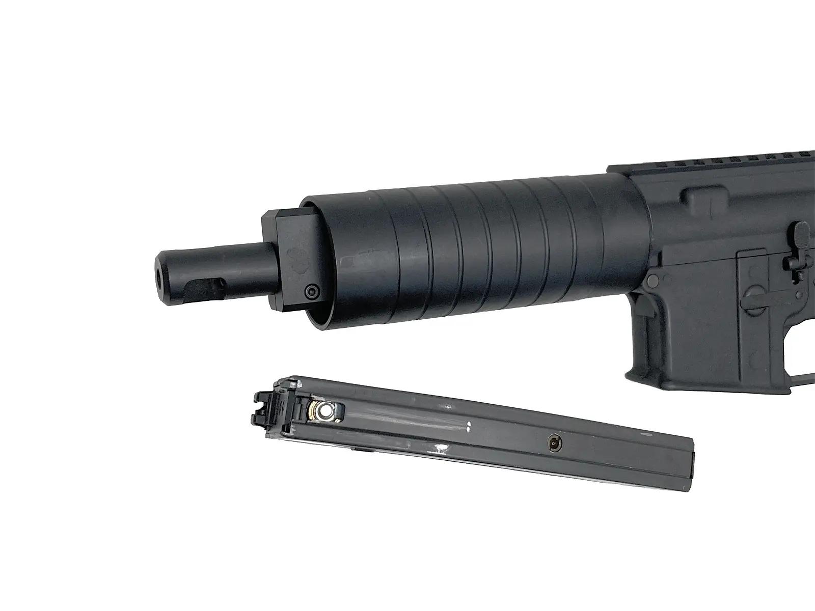 ロッキーマウンテンアームズ社が手掛けた、M16民間型「AR-15」の短縮モデルである。本機最大の魅力は、マグナブローバックシステムがもたらす高速ボルト作動のダイナミックな衝撃にある。従来のM4シリーズとは一線を画すフォルムを持ち、作動感にも本機独自のチューニングが施された。コンパクトな造形の中にメカニズムの妙が凝縮されており、手にする者に確かな満足感を与える秀作と高く評価できる。