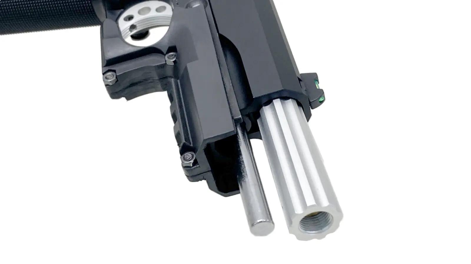 ワイドタイプの金属製スライドストップ、金属製フルートバレル、蛍光フロント&リアサイト、金属製マグウェル、樹脂製アンダーマウントを組み込んだカスタム品。