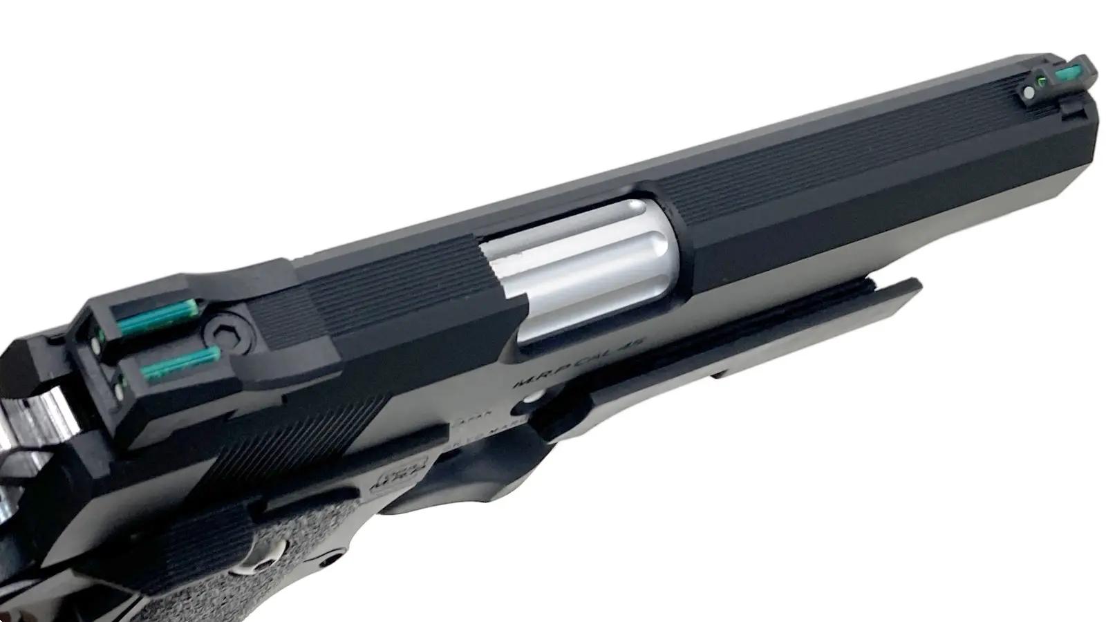 スライドには重量弾「.45ACPミリタリーボール+P」への対応を想定した角型ヘヴィタイプを採用。また、ピカティニー規格(20mm幅)のアンダーレイルが付属し、各種フラッシュライトを装着可能なタクティカルスタイルと、レイルレスのスポーツスタイルを選択可能なオールマイティモデルとなっている。