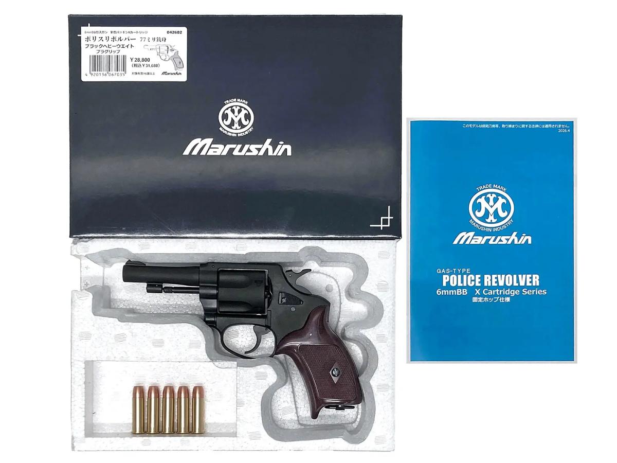 [マルシン] ポリスリボルバー 3インチ 77ミリ銃身 Xカートリッジ プラグリップ仕様 ブラックHW ガスリボルバー (新品)