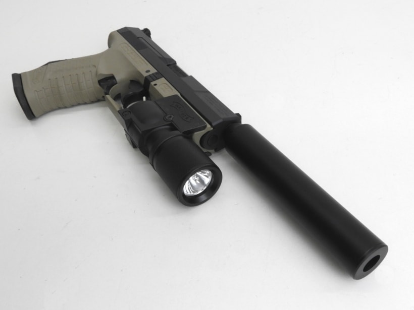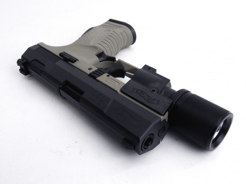 ワルサー社正式契約モデルなのでスライドにはその刻印が堂々と入っている。可動部分は実銃とほぼ変わらず、マニュアルセフティやトリガーセフティ、コッキングインジケータ、デコッキングなど完全に再現されている。エアガンとしての射撃性能はもちろんよいが、この銃はその動作も魅力的である。 このモデルではサイレンサー、タクティカルライトが付属している。