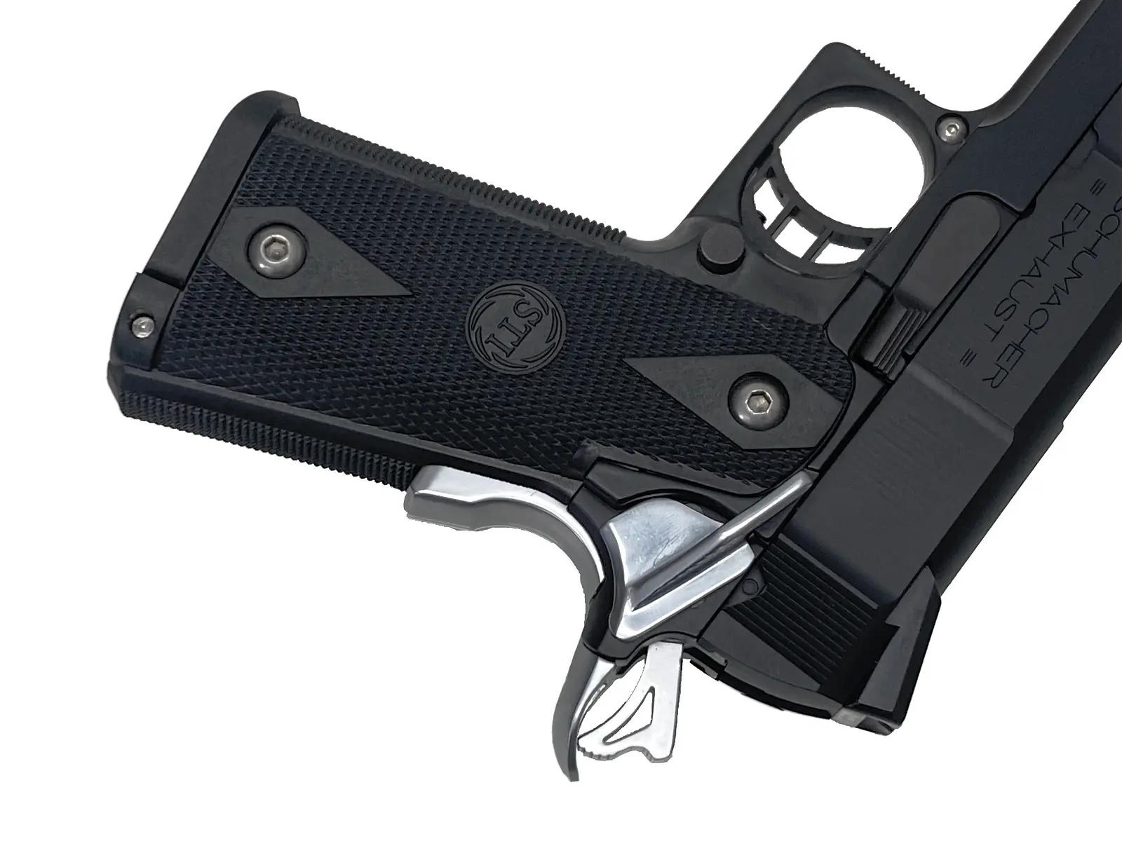 ヨーロピアン・ガンスミスの美学が宿る、STIベースの異色カスタム。コンシールドキャリーに特化したスライドの肉抜き加工は圧巻の一言だ。KSCは十八番の精密NC加工に加え、シャーシにアルミ素材を採用することで、実銃の徹底した軽量化コンセプトを見事に具現化した。1911の伝統を継承しつつも、現代的なスピードシューティングの息吹を感じさせる、技巧派好みの逸品といえる。