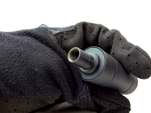 アウターバレルの外でも内でもなく、インナーバレル外周にネジを切ってサイレンサーを装着するという逆転の発想。リアルな外観のディテールを損なわないと同時に、脱着によるネジ部の掠れを恐れる必要が全くありません。