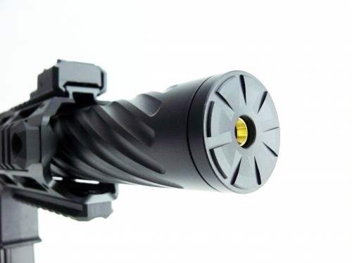 特徴的な形状のサイレンサー。蓋が閉開し内部にセパレートタイプのバッテリーを収納します。