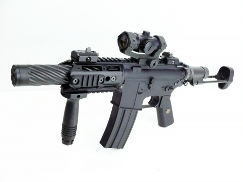 コンパクトですが、サイレンサーやマウントの存在でインパクトは抜群。マウントレールの自由度もあり、手を加えやすくなっています。