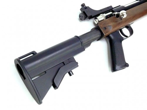 ●ピストルグリップ、伸縮して長さ調節可能なテレスコピックバットストックを採用。