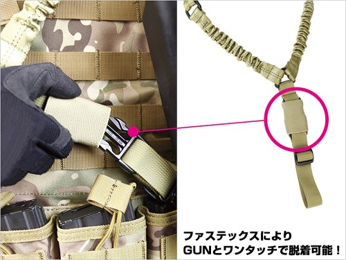 GUNをワンポイントで固定し使用するためのバンジースリング。