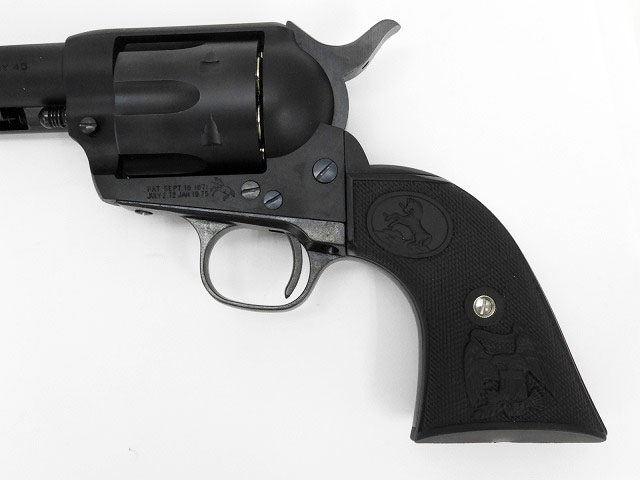 1873年に開発されたコルト社製シングルアクション式回転式拳銃。保安官が愛用していたことから、「ピースメーカー(Peace Maker)」という愛称で呼ばれることが多い。 1872年末にブラックパウダーモデルが完成し、陸軍用の7-1/2インチモデルが最初の生産となる。1896年からは、フレームを強化・無煙火薬を使用するスモークレスモデルが登場。1892年にダブルアクション式の「ダブルアクションアーミー」に替わるまで、20年もの間アメリカ陸軍の制式拳銃(制式名「M1873」)として活躍。西部劇ファンに親しまれ、今なお生産が続けられている。生産時期では、1st.、2nd.、3rd.、4th.の年代に区別されている。口径は.22口径〜.455口径まで36種類もある。