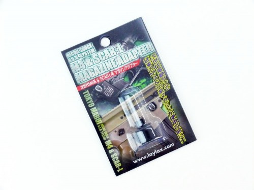 [LayLax] 次世代M4&SCAR-L用 マガジンアダプター (未使用) 製品詳細画像 パッケージ画像。