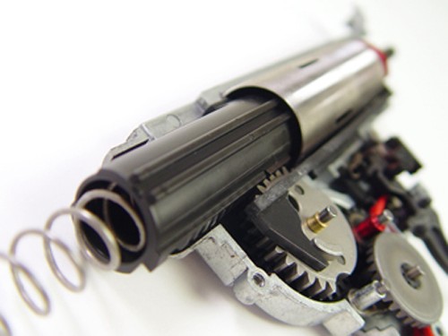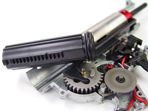 各部のゆるみや内部の摩耗・損傷部品の交換といった、実銃同様の定期メンテナンスが必須条件になりつつあり、中でもパワーソースとリコイルエンジンを同時に作動させるギアやピストン部に至っては、最も高負担を強いられている部分といえ、今までのノンリコイル電動ガンに比べ1/2〜1/4まで耐久寿命が低下(当社テスト比)しています。