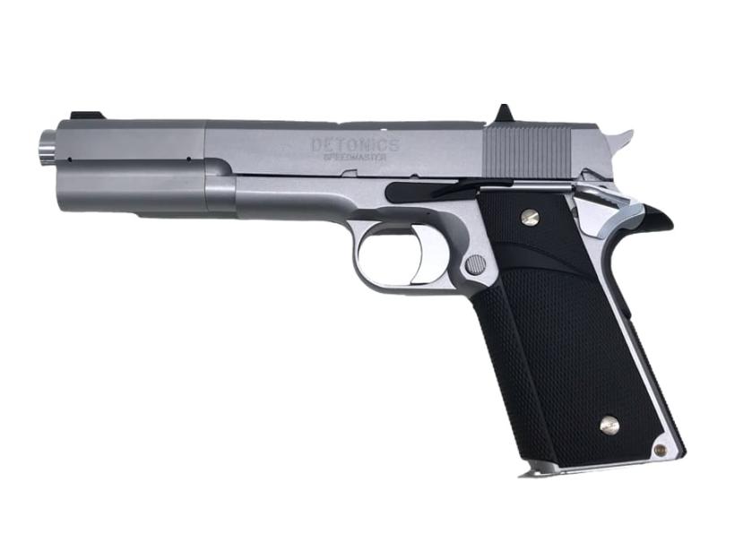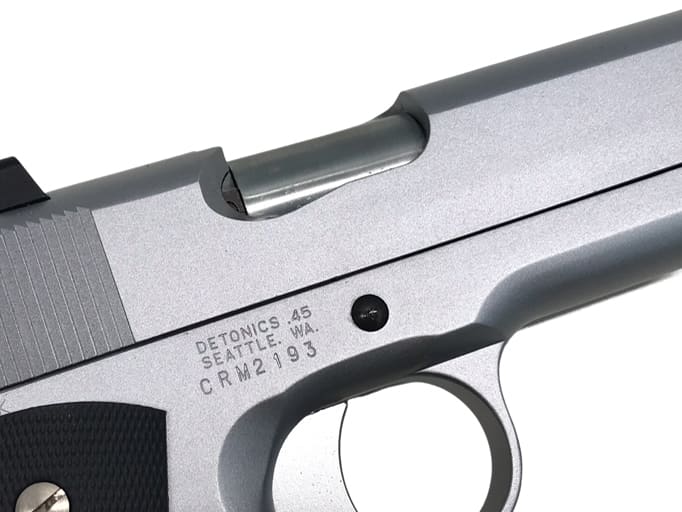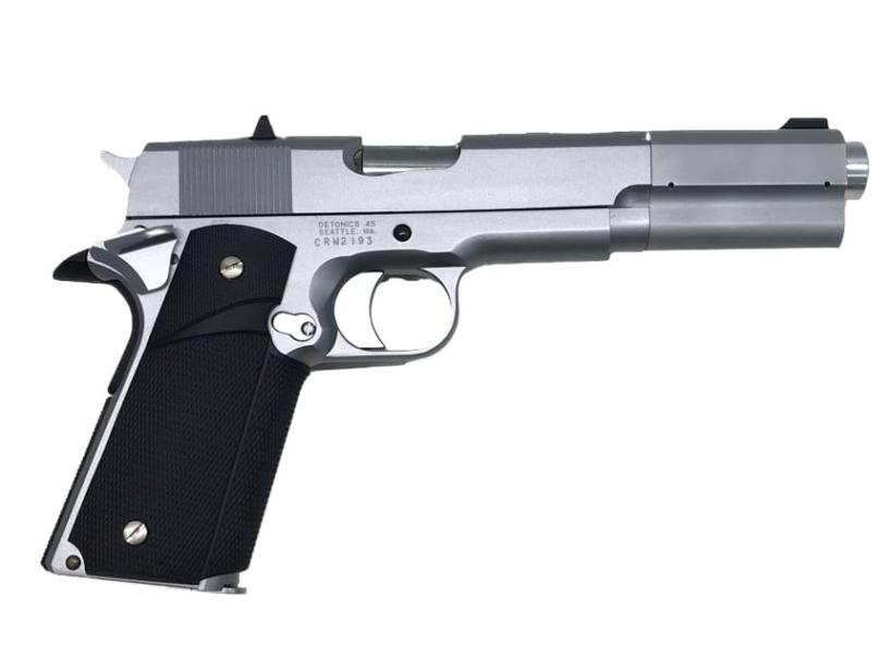 1911年にアメリカ陸軍に制式採用されて以来、1発でターゲットを無力化できる「.45口径弾」と共に、アメリカ全土で強く信頼され根付いてきたハンドガン。それがコルト社の「M1911ガバメント」だ。初期設計で既に高い完成度を持ったそのメカニズムは今だ現役であり、また多くのメーカーが様々なカスタム・モデルを生み出してきた。そのカスタム・ガバメント市場に“サブ・コンパクト”という土壌を築き上げたのが、1970年代後半に登場したデトニクス社の「コンバットマスター」シリーズである。それまで、一部のガンスミスの手でのみガバメントのコンパクト化が行われていたが、携帯性に優れたガバメントを求める声が多くありながらも、メーカーからの市販はされていなかった。「コンバットマスター」の登場まで、コンパクト・ガバは1品限りの希少な特注品でしかなかったのだ。 当時、銃身長4インチ以下の.45口径オートマチック・ピストルでは、作動の安定性を市販レベルまで高める事が困難とされていた。全長を切り詰めればリコイルスプリングが収まるスペースまで短くなり、作動の不安定や反動が強くなってしまう等の様々な不具合が生じる。そこでデトニクス社は、複数のリコイルスプリングを使用する〈リコイルシステム〉を開発し、反動を最小限に抑えながら極限とも言える〈銃身長3.5インチ(89mm)〉の市販に成功。「コンバットマスター」は、“実用的”な“世界最小の.45セミオート”としてデビューを飾ったのである。