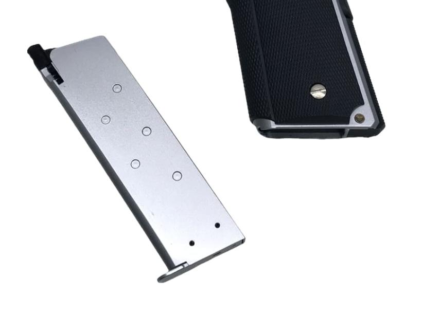 ハンドガンの場合は全体を金属性とする組み換え、エアソフトガンの場合は射出エネルギー0.98J以上にする改造を行うと銃刀法違反となります。HFC134a仕様のガスガンにCO2用マガジンを組み込む、スライドを金属製の物に差し替える等、簡易な改造でも罪に問われる可能性がございますので、絶対にお止めください。