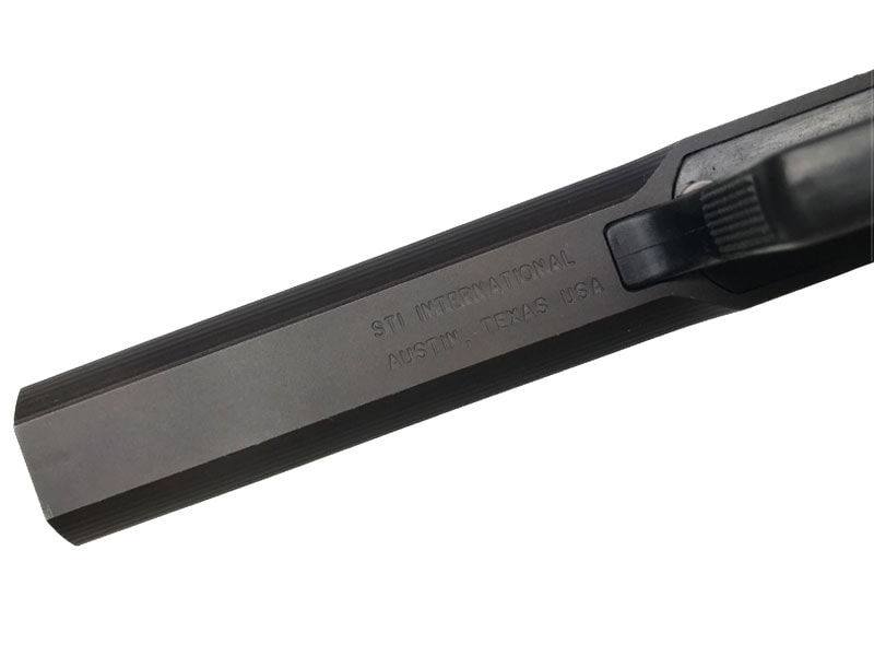 ワイドシャーシを開発してSTI社の有能さを見せつけた一挺。ストリートファイト&ディフェンスからコンバットシューティング競技に至るまで、マルチパーパスユースのコンバットピストル。銃身長5インチ。左右両側から操作できるアンビセフティ、上下左右微調整可能なリアサイトなど、一級のパーツで武装。 97年から戦列に加わったワイドフレイムの中心モデル。フレイム強化を含めスコープ、ダットサイト、フラッシュライト、レーサー等のマウント装着時にも十分な強度をもつ。