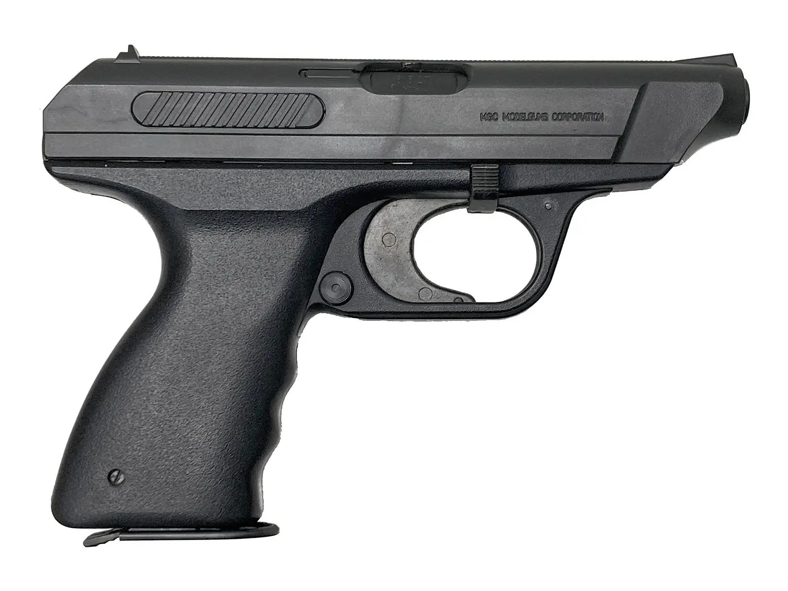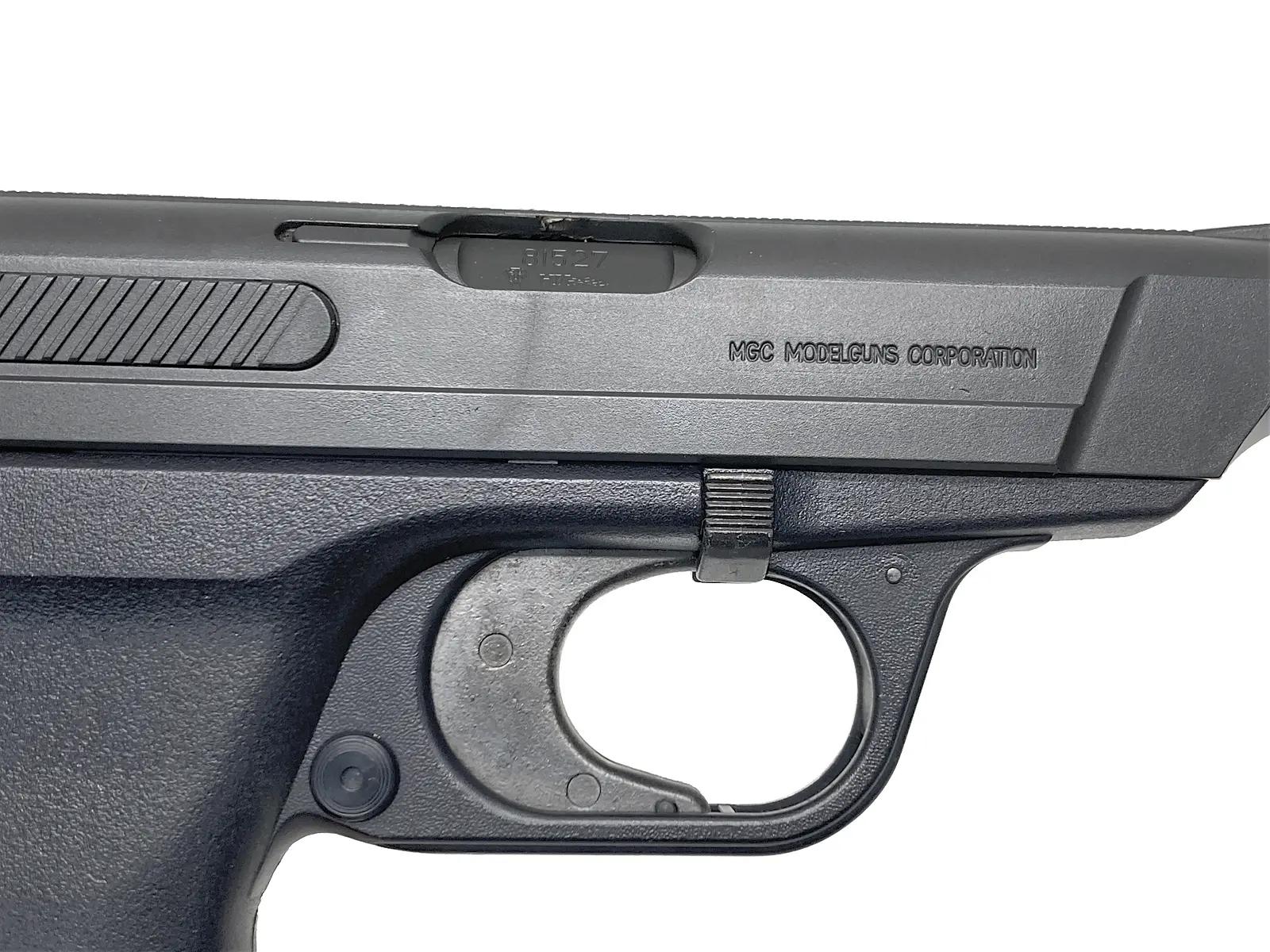 ポリマーフレームオートの先駆者として知られる独H&K社の意欲作を、MGCが独自のブローバック機構でモデルアップ。実銃同様のダブルアクション方式や、特徴的なサイトシステムを忠実にトレースしている。専用ストック装着時の3バースト機能を前提とした設計思想は、現代のタクティカルガンの原点を感じさせる。今や市場でも稀少な存在であり、その独創的なメカニズムは資料的価値も極めて高いと評価する。