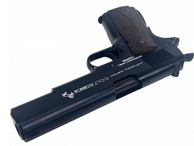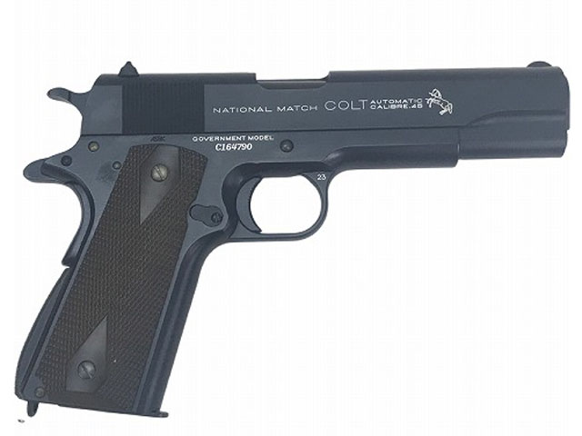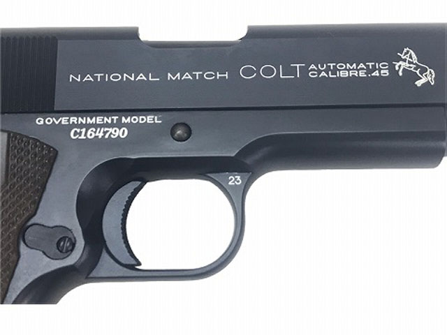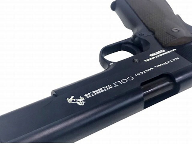 コルト社が特に精度の良いM1911A1を選別し、マーキングを施した競技モデルとして生産を開始したという「ナショナルマッチ(戦前型)」。塗装はロイヤルブルー仕上げ、各部刻印へホワイトレタリング処理された限定モデル。