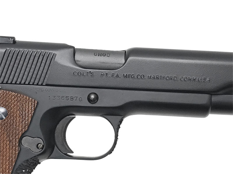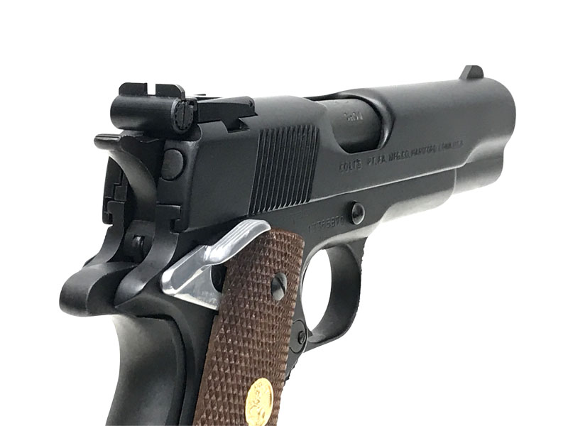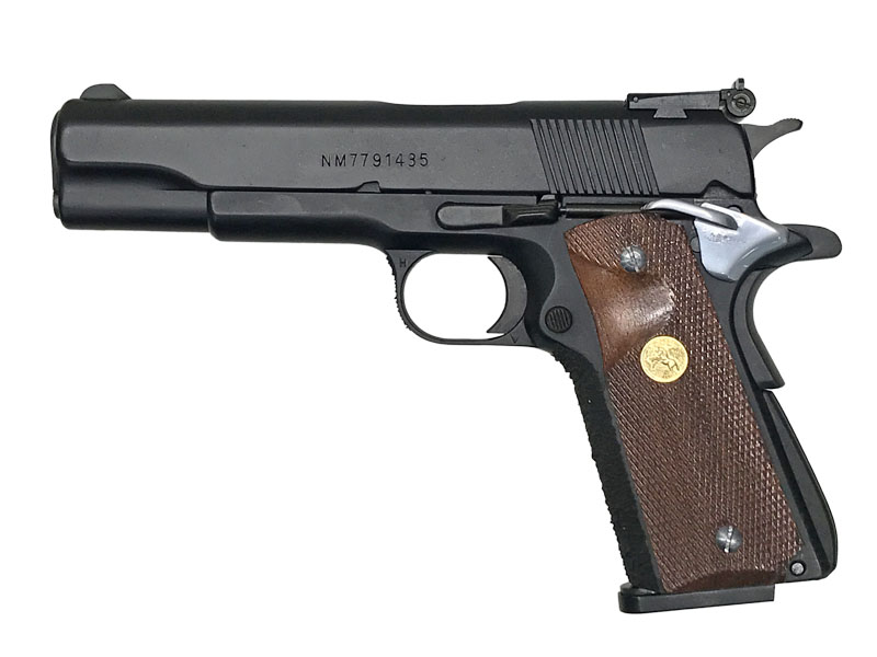 1911年にアメリカ軍に制式採用され、軍用拳銃としての制式名称「M1911」、のちに1926年に改良が加えられたものは「M1911A1」を与えられた。その後1985年、後継となるベレッタM92Fが制式採用されるまで、実に70年以上にわたってアメリカ軍の制式拳銃であった。今なお、一部の特殊部隊では改造されつつ使用され続けている。 .45ACP(.45Auto Colt Pistol)という大口径弾を使用するこのモデルは、ストッピング・パワーの高さによって信頼された。軍用のM1911およびM1911A1の口径は.45ACP、装弾数はシングル・カラム・マガジンによる7+1発であるが、その後の民間でのバリエーション展開によって数々の口径に対応したバージョンが発売された。 現在も.45ACP仕様が殆どであるが、競技用モデルには.38スーパー仕様が存在する。 現代の自動拳銃に広く用いられるティルトバレル式ショートリコイル機構の完成系であり、20世紀における世界各国での自動拳銃開発に対し、非常に大きな影響を与え「大型自動拳銃の形を決定付けた銃」と言える。 誕生以来大半のパーツの設計が変わっておらず、非常に豊富なカスタムパーツが存在し、改造しやすい銃である。