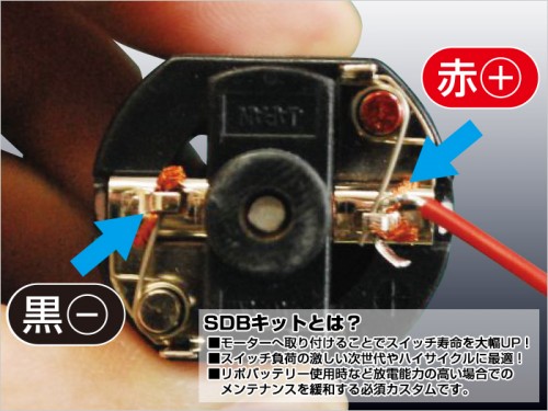 このアイテムはモーター側に装着する事で、スイッチに流れ込む逆起電力を抑え、スイッチ寿命を大幅UP!