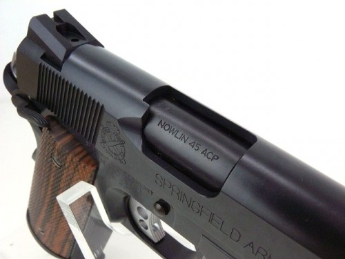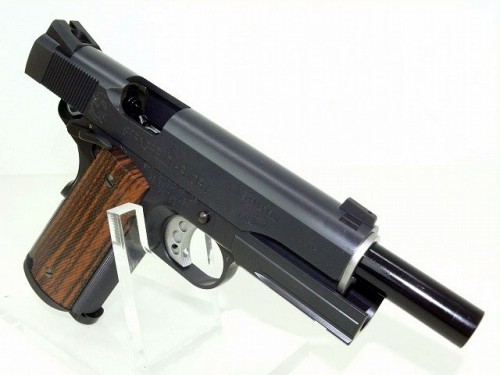 最前線で凶悪な犯罪者と戦う.45「FBI」モデルに、ライト等のアクセサリー類を装着可能にする20mm幅ピカティニレールを搭載した「WA FBIカスタム ライトレール」バージョン。