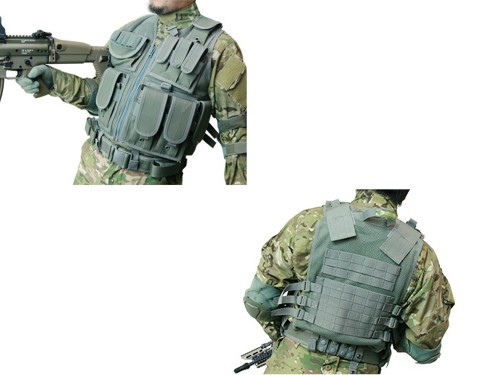 仕様は、ベルクロ脱着式でパッチパネルとしても使用可能なショットシェルパウチと無線機や小物アイテムを収納するのに便利なレディオパウチ、M16マガジンやAKマガジンが収納できる2連マグパウチが4セット。