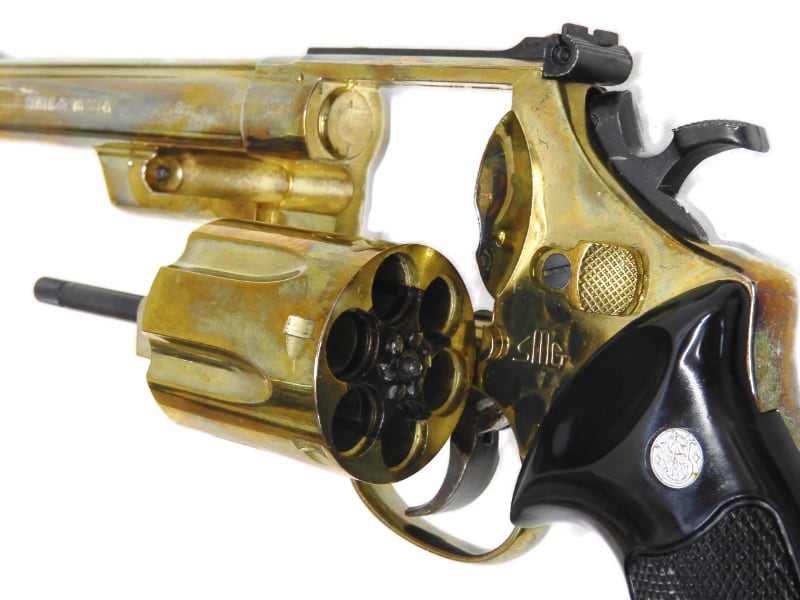 1956年にスミス&ウェッソン社が開発した.44口径の回転式拳銃。狩猟用として開発された.44Magnum弾を、対人用に振り替えたもの。当時史上最大の大口径銃として売り出され、映画「ダーティハリー」においてクリント・イーストウッド演じる主人公ハリー・キャラハンが使用して一躍有名になった。4インチから8-3/8インチまで、バレル長の異なる4つのモデルがあり、またM27、28の様な大型のフロントサイトとテーパードバレルを持つ「M29 マウンテンガン」や3インチ短銃身モデルの「M629ES」などのバリエーションがある。 また正しくはスミス&ウェッソン社社製のリボルバーほぼ全て)には、モデルナンバーの最初に「6」が付けられる。