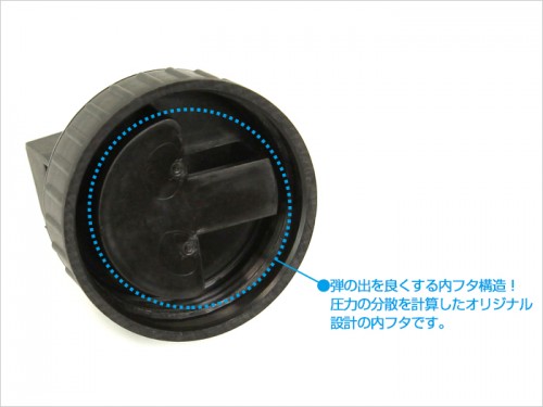 内蓋には業界初の乾燥剤ポケット機能を持たせるだけでなく、BB弾の排出性を高める為に特別に設計された特殊構造仕様!