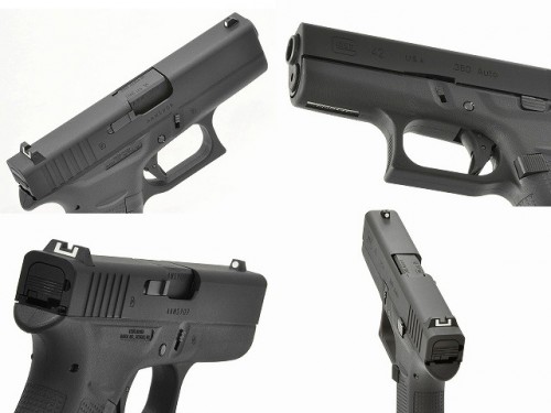 グロックコンシールドキャリーモデルG42が業界初のモデルアップ!新規薄型アルミスライドとフレームを装備し、リアサイトはリアルサイズパーツ互換、エキストラクターは別構造のリアルな仕上がり。JP版は日本用HFC134aガス使用時でも鋭いブローバックとヘヴィーリコイルを実現。リアル外寸のスライドとフレームなので実銃ホルスターにも対応しやすい。Glock42.380AUTOリアルマーキングのLimitedEdition。