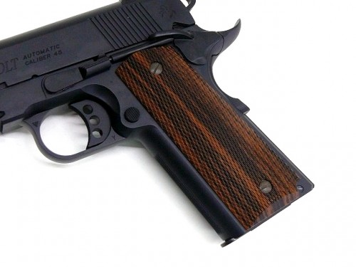 [WA] コルト レールガン オールブラック (中古) 製品参考画像3 グリップのフロントストラップには、機械加工で滑り止めのグルーブを再現しています。