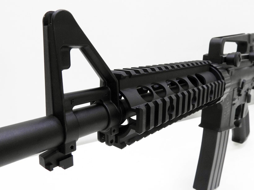 米軍制式の狙撃銃にも採用されているレイルシステム「フリーフロートRAS」仕様のM4を、精密なNC加工によって再現。