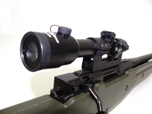 オリーブドラブのカラーはどんな場所にもなじむいい色です。専用のマウントとスコープはひと味違うスナイパーを演出してくれます。