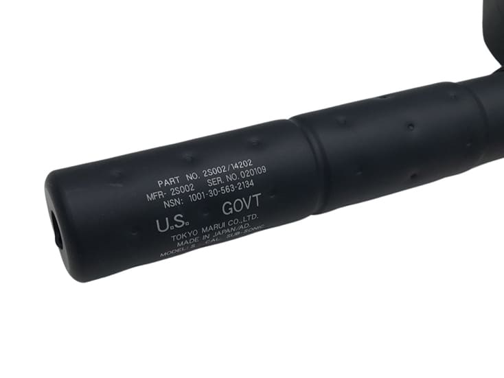SOCOMタイプ・サイレンサー標準装備:内部に特殊な吸音材を使用したサイレンサーが付属。エアソフトガンの発射音をおさえることができます。また、通常のコンペンセイターも同梱。サイレンサーを取り外した通常のスタイルも楽しめます。