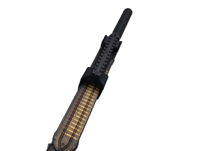 トリプルレイル:サイトレシーバーに3つのマウントレイルを装備。ドットサイトやフラッシュライトなど、幅20mmのマウントレイルに対応したオプションパーツがセット可能です。