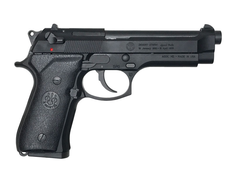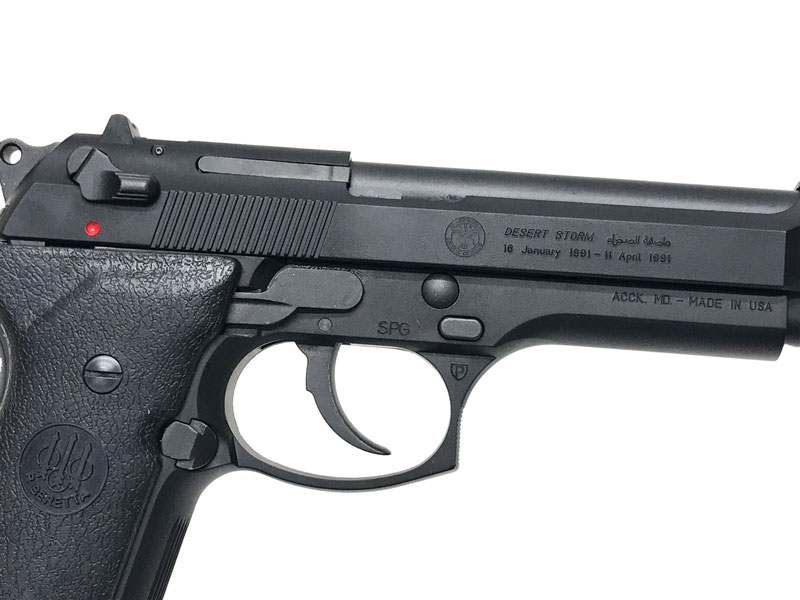湾岸戦争戦勝記念モデルとしてベレッタUSAが限定販売した実銃を再現。作戦名「デザートストーム」と日付が刻印されています。7mmキャップ火薬使用。HW。ベレッタ刻印入りのラバーグリップを装着したカスタム品。