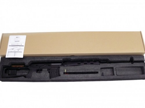 全体がブラックのドラグノフSVD。脱着式のチークパッドもついておりエイミングもしっかり出来る。
