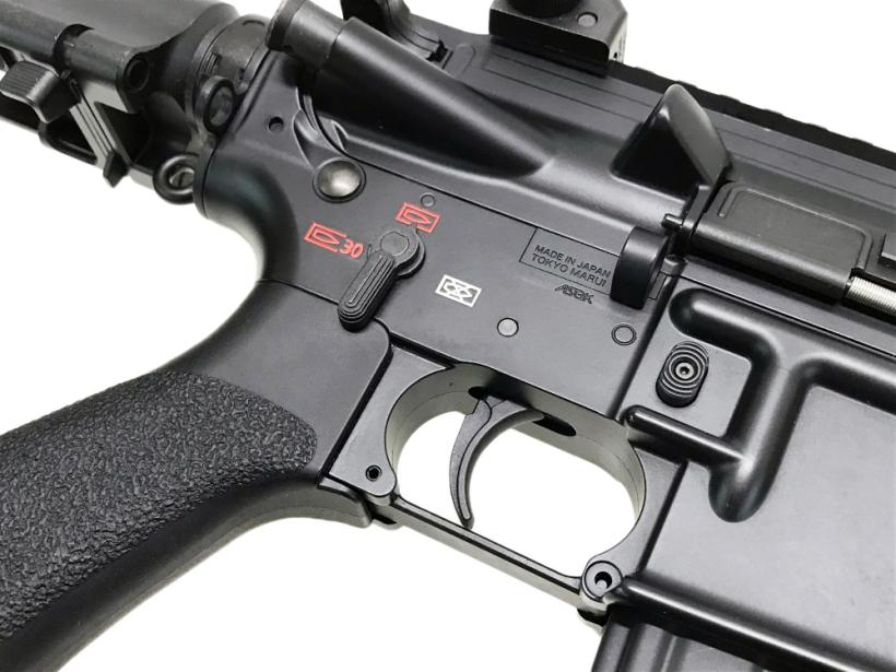 9インチバレルにショート・バッファーチューブ&ワイヤーストック、4プロングタイプの専用フラッシュハイダーといったHK416Cのスタイルを再現しつつ、バックアップサイトやTDタイプ・ライフルグリップ、そしてHK純正タイプ・フォアグリップを標準装備したカスタムモデルとなっています。