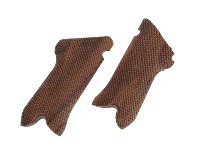 ルガーP08専用 タナカ純正木製 アメリカンウォールナットフルチェッカーグリップ。