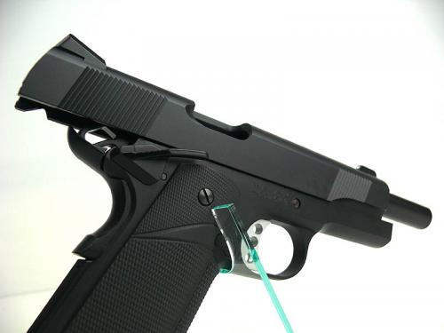 コルトM1911A1ミリタリーのフレームにスプリングフィールド社のスライドを組み合わせたモデル。