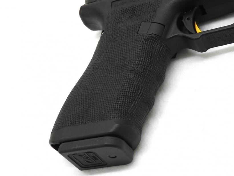 フレームにはシルバーのカスタムピン。エキストラクターは別パーツとなっている。マガジンにもグロック刻印入。