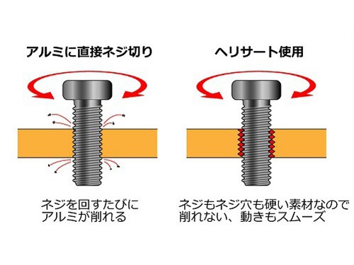 サイト調整、マウントの脱着で繰り返し使用される各ネジ穴にヘリサート加工を施し、高い耐久性と最高レベルの強度を誇ります。
