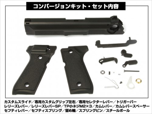 このキットを東京マルイガスブローバックM92Fに組み込むことで、フルオート化するためのコンバージョンキットです。メインパーツはこだわりの国内生産、無加工での装着と安定作動を実現する高い精度を誇ります。