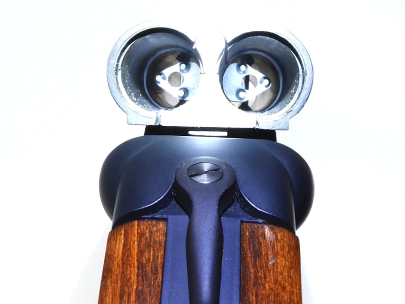 実銃同様に、中間部で折れ曲がる際にインナーハンマーをコッキングし、2個のトリガーでそれぞれ左右のハンマーをリリース。