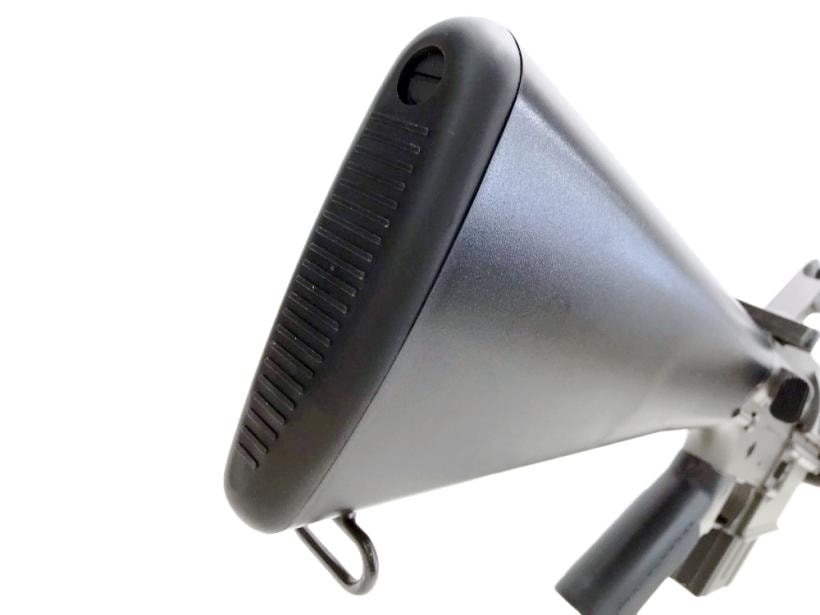 実物のリアリティを追求:チューリップ型のフラッシュハイダーやラバー製バットプレート、そしてリアルサイズのグリップをはじめ、ベトナム戦で活躍したスタイルを忠実に再現しています。