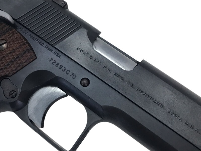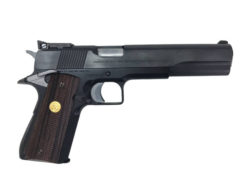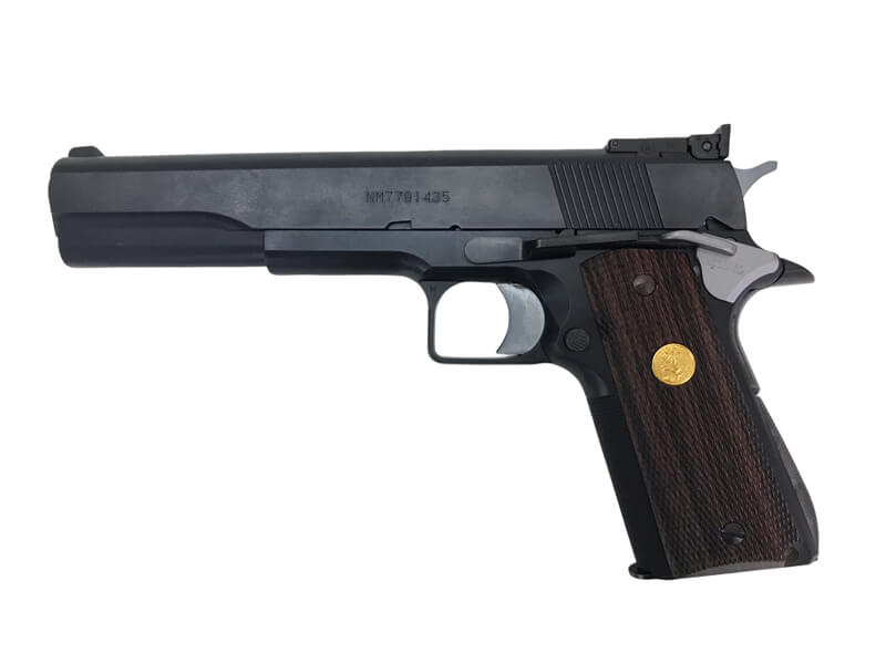 ナショナルマッチモデルは標的射撃競技仕様で、特に精度の高い銃身が組込まれ、他の部品の組立て精度が高い。第二次大戦前のモデルは外見的には刻印以外はガバメントモデルと同一仕様であったが、戦後モデルになると、コルト社純正の可動照準器であるアクロサイトが装着された。