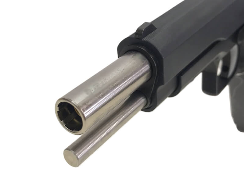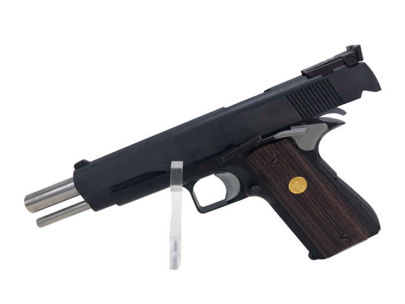 ハンドガンの場合は全体を金属性とする組み換え、エアソフトガンの場合は射出エネルギー0.98J以上にする改造を行うと銃刀法違反となります。HFC134a仕様のガスガンにCO2用マガジンを組み込む、スライドを金属製の物に差し替える等、簡易な改造でも罪に問われる可能性がございますので、絶対にお止めください。