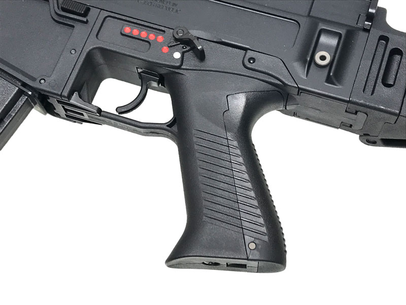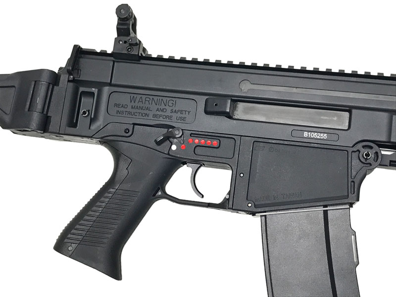 着脱および折りたたみ可能な伸縮ストックや、各部のアンビ化、ポリマー樹脂採用など、近代アサルトライフルに要求される基本仕様を押えた設計であることは勿論、